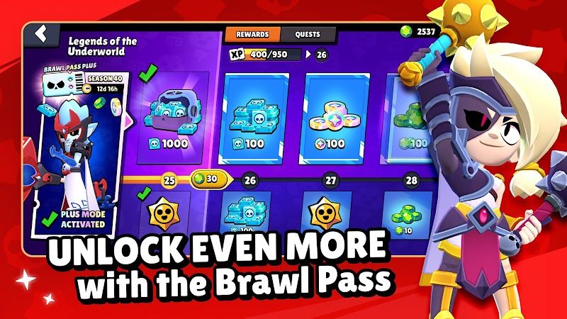 The Brawl Pass is the main monetization offer of Supercell, which is priced at 169 Gems (about 10 dollars) per 70 days long season. The pass features two parallel tracks: a free tier accessible to all players and a premium tier offering an exclusive chromatic Brawler, additional boxes, skins, and cosmetic items. Chromatic Brawlers initially possess Legendary rarity but decrease to Epic rarity over subsequent seasons, making them eventually more accessible. The pass provides excellent value for committed players, essentially guaranteeing the featured Brawler plus substantial progression resources.