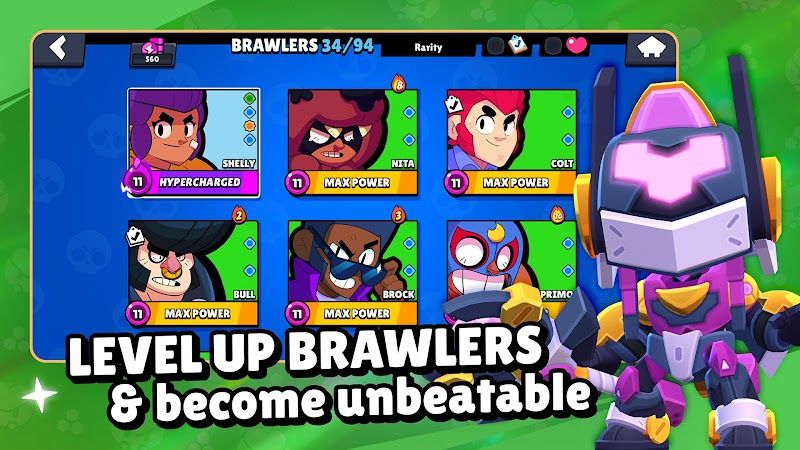 The upgrade path is based on several currency interconnected and upgrade paths. Every Brawler must live through 11 power levels with requirement of Power points, level 10 and 11 demanding purchase of Gears using Coins and finally Scrap. In addition to the raw statistics, each Brawler will unlock two Gadgets and two Star Powers, both of which change the capabilities of the game radically. As an example, the Meteor Rush Star Power in El Primo allows him to move faster following his Super, and this allows him to employ a different approach to engagement. Players can unlock these upgrades in Brawl Boxes which are received by the Trophy Road or with Gems, the premium currency.